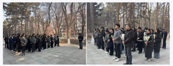 上午时分,烈士陵园内庄严肃穆,青松挺拔。全体人员整齐列队,神情凝重。
